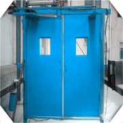 礦用純氣動(dòng)無壓風(fēng)門只要有穩(wěn)定持續(xù)且壓力不小于0.4MPa的氣源即可,而電氣自動(dòng)風(fēng)門不但要具備電源還要有與氣動(dòng)風(fēng)門一樣的氣源才能完成工作任務(wù)。使用電氣開關(guān)裝置的行車自動(dòng)風(fēng)門駕駛員在經(jīng)過風(fēng)門的時(shí)候不用下車就能順利暢通無阻的通行,這些都是紅外或光控感應(yīng)器及PLC軟件的功勞。使用純氣控裝置的自動(dòng)風(fēng)門就沒有這么先進(jìn)了,在礦車駕駛員或礦工經(jīng)過風(fēng)門時(shí)必須靠近氣控按鈕按下綠色的按鈕風(fēng)門才能打開,過去后再次按鈕另一側(cè)的紅色按鈕,門扇才能關(guān)閉。